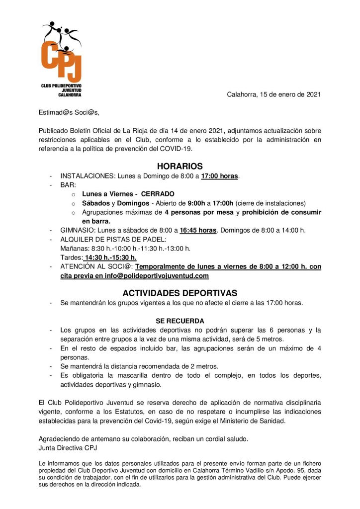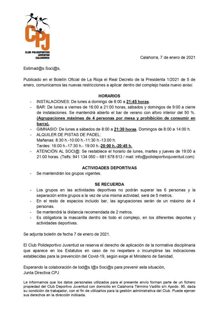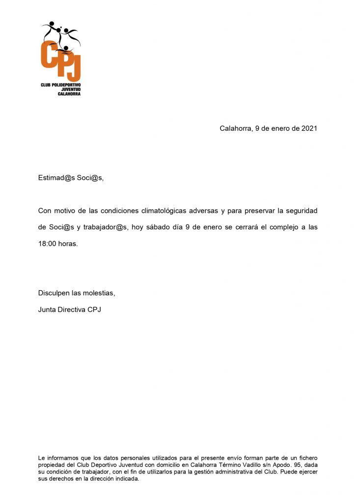 COMUNICADO CPJ 09-01-21 (ADELANTO CIERRE COMPLEJO DIA 9 DE ENERO)
