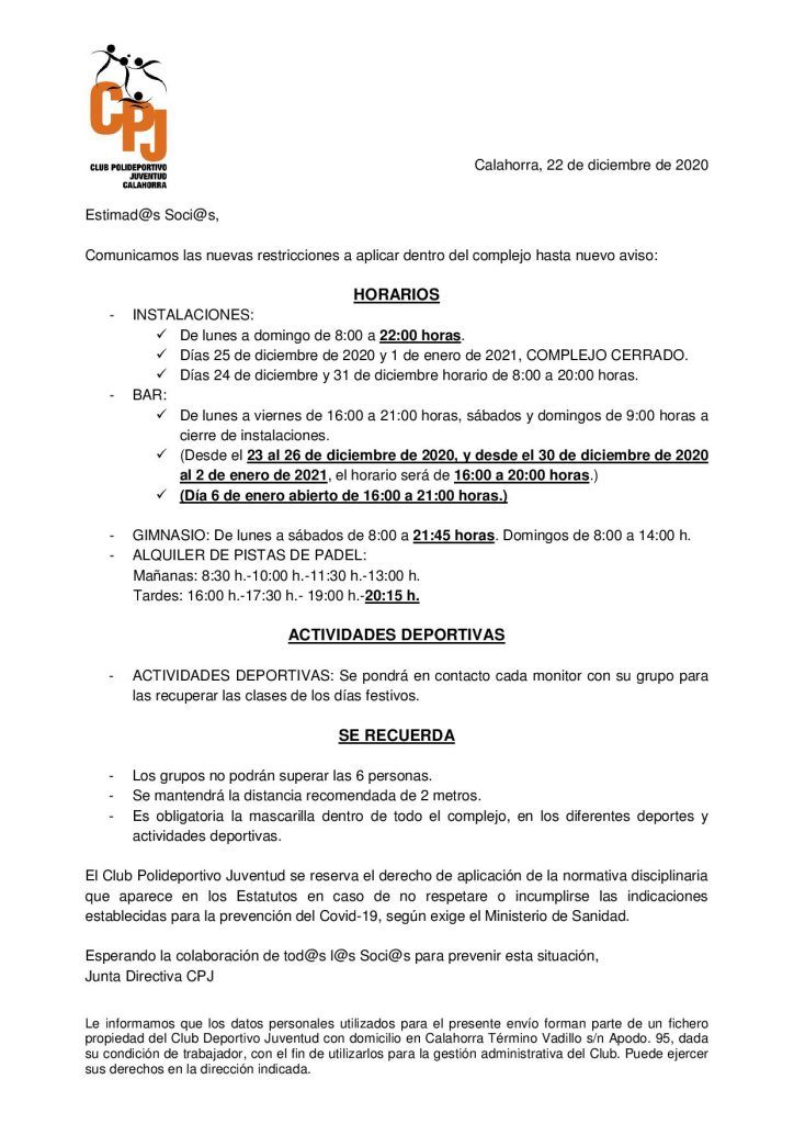 HORARIOS Y RESTRICCIONES NAVIDAD