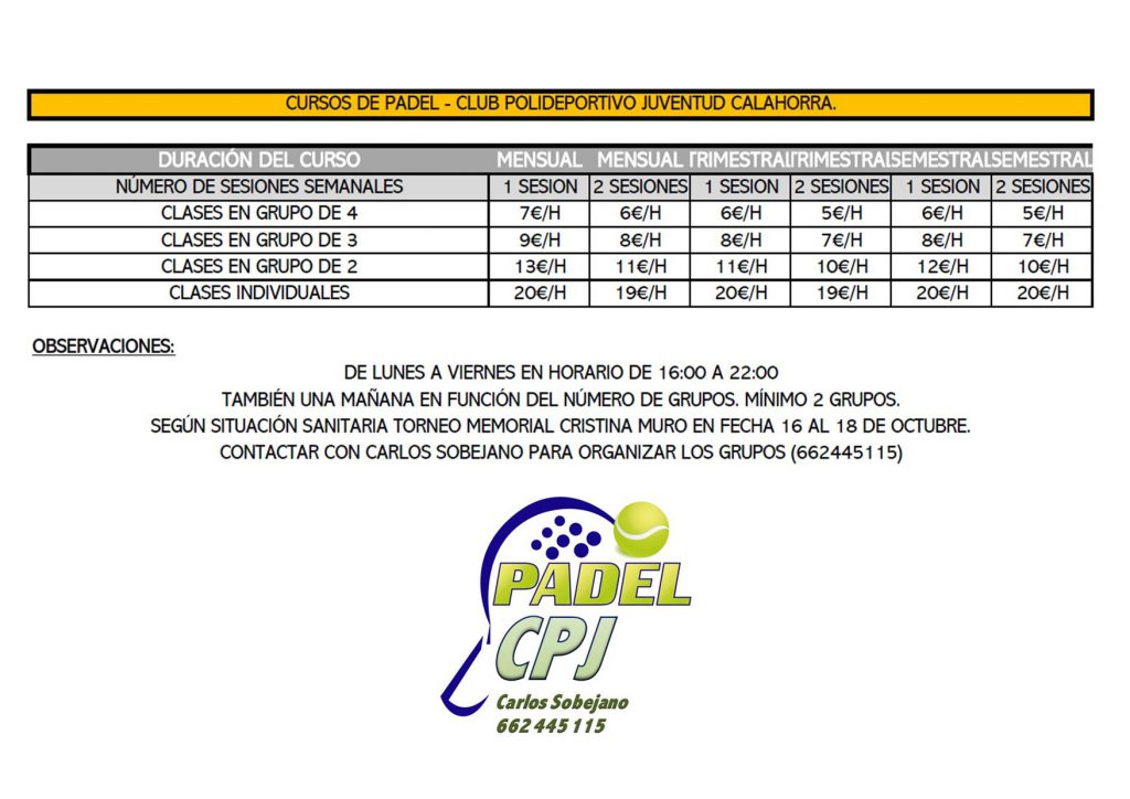 NUEVOS CURSOS PADEL CPJ