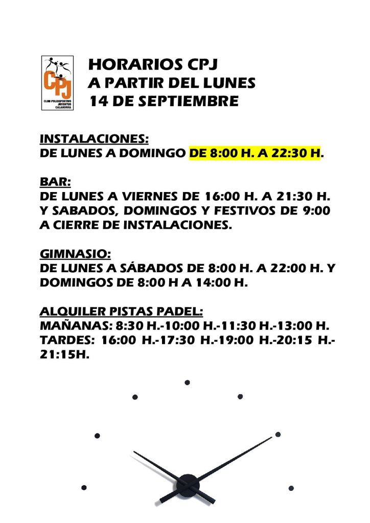 HORARIOS A PARTIR DEL LUNES 14 DE SEPTIEMBRE