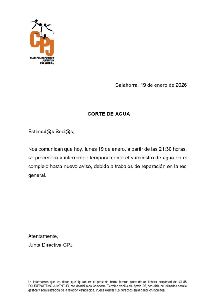COMUNICADO CPJ (CORTE DE AGUA)