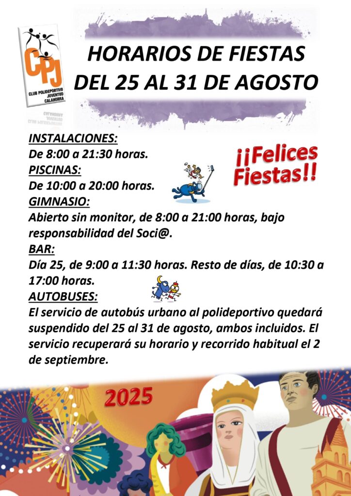 HORARIOS DE FIESTAS DEL 25 AL 31 DE AGOSTO