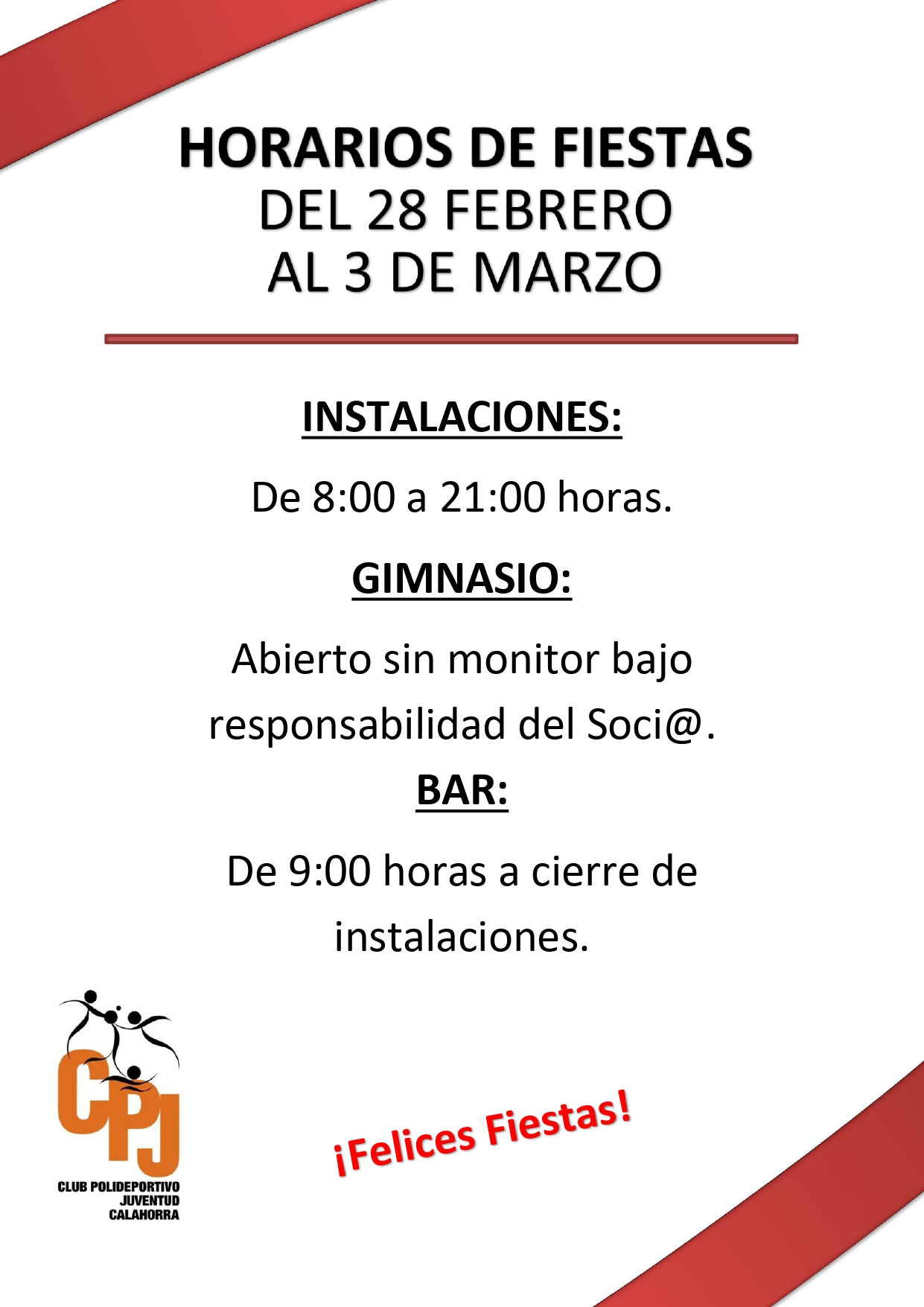 HORARIOS FIESTAS DEL 28 DE FEBRERO AL 3 DE MARZO