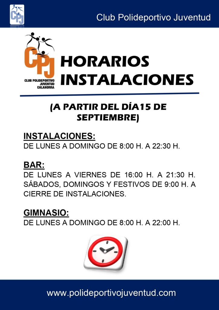 HORARIOS INSTALACIONES (A PARTIR DEL DÍA 15 DE SEPTIEMBRE)