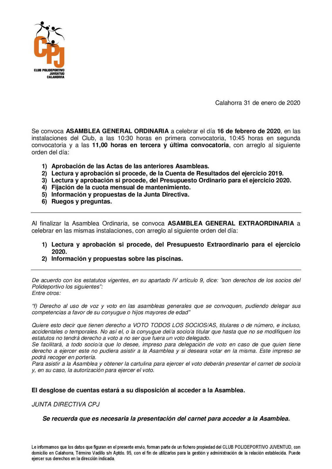 ***CONVOCATORIA ASAMBLEA GENERAL ORDINARIA Y EXTRAORDINARIA (DOMINGO DIA 16 DE FEBRERO A LAS 11:00 H.)***