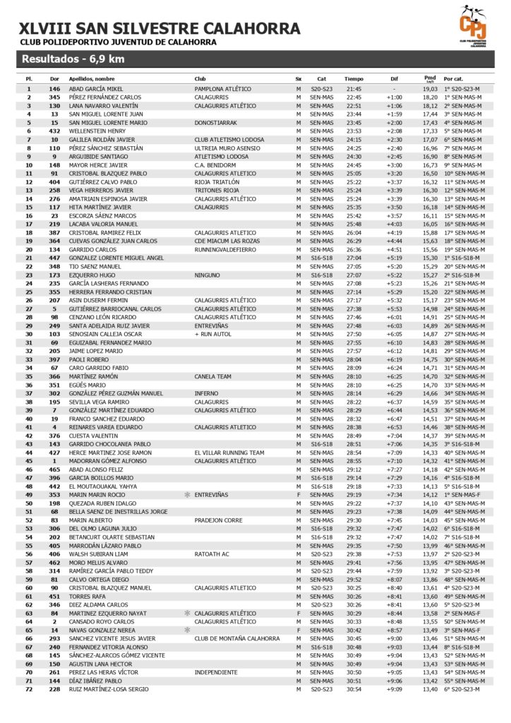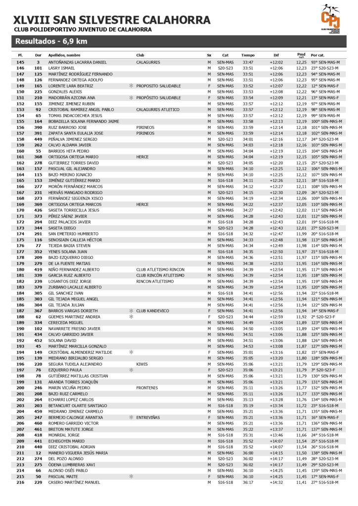 RESULTADOS SAN SILVESTRE 2025