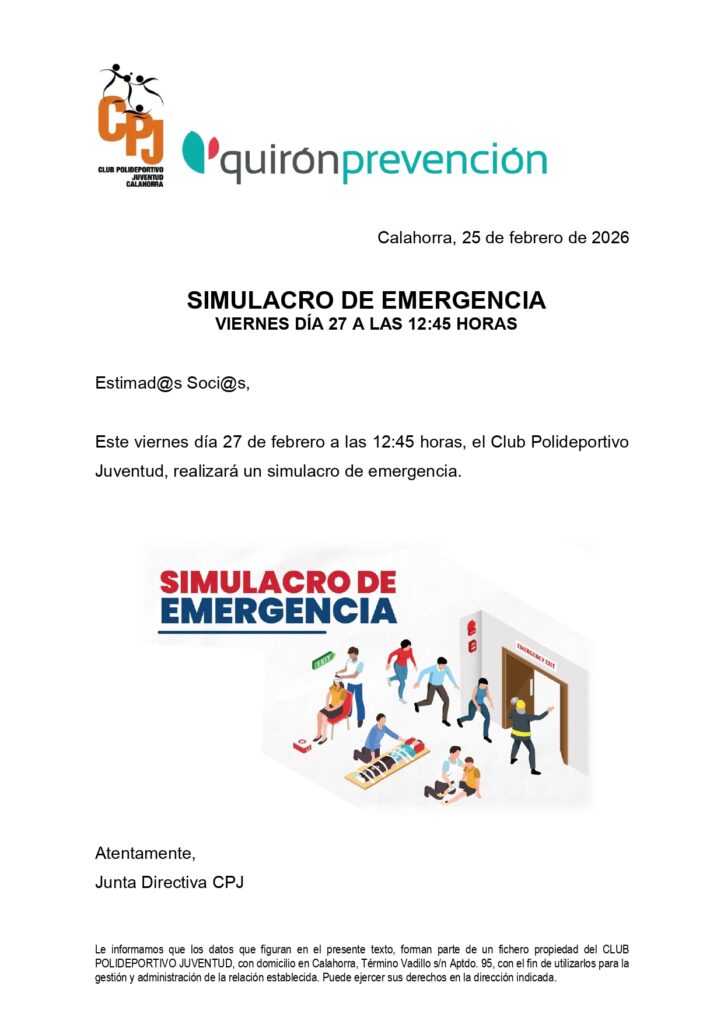 SIMULACRO DE EMERGENCIA (VIERNES DÍA 27 DE FEBRERO A LAS 12:45 HORAS)